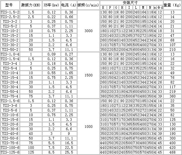 注:此外我公司還生產YZS、YZO和YZUL系列振動電機。